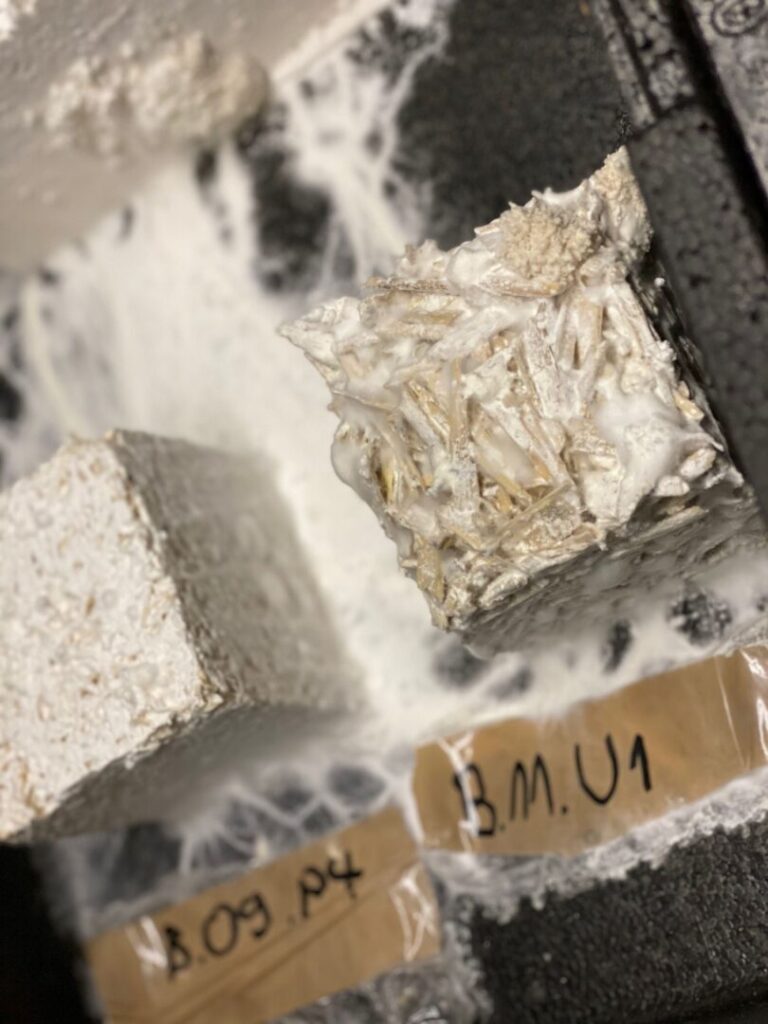 Das Labor funktioniert mit einfachen, energiearmen Prinzipien durch integrierte Regenwassernutzung und natürliche Lüftung. Eine Solartrocknung ist ebenfalls geplant. Zum Wachsen benötigt das Myzel eine sterile Umgebung, eine bestimmte Temperatur und einen genauen Zeitpunkt für den Abbruch des Wachstums, bevor die Früchte, die Pilze, schießen. Studierende der HCU und Schüler*innen aus Wilhelmsburg erforschen gemeinsam das Bauen mit lebenden Materialien von der Kultur bis zum fertigen Prototyp. Es wird untersucht, auf welchem Basismaterial das Myzel besonders gut wächst. Der japanische Staudenknöterich, der wegen seines ausufernden Wachstums überall bekämpft wird, hat sich schon als besonders günstig erwiesen.