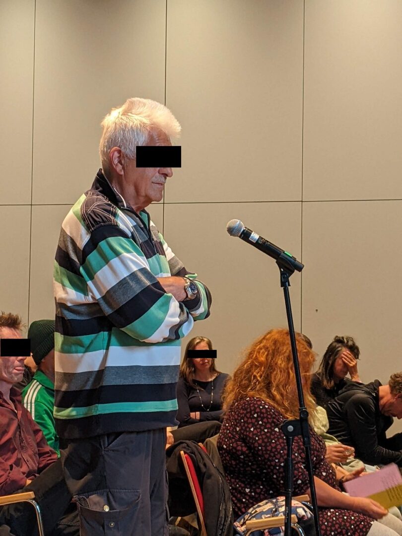 Sophie Brüll schilderte ein gemeinsames Treffen von 40 bis 50 betroffenen Menschen mit zwei „Bürgernahen Beamten“ (BüNaBes), einem Kommisarleiter des Kommissariats 44 sowie zwei weiteren Beamt:innen (zuständig für den Jugendschutz) des PK46 auf Initiative von MARBL. In der Initiative haben sich Eltern, Kitas und Schulen vernetzt. Anworten hätten sie jedoch keine bekommen, im Gegenteil, die Polizist:innen positionierten sich „unverblümt“ und betrieben eine „emotionale Täter-Opfer-Umkehr“. Ein BüNaBe, zuständig für die Jugendarbeit, blieb während der gesamten Diskussion stumm. Eine andere Polizistin zeigte sich sehr betroffen, allerdings nicht vom Verhalten ihrer Kolleg:innen, sondern weil sie sich persönlich angegriffen fühlte.