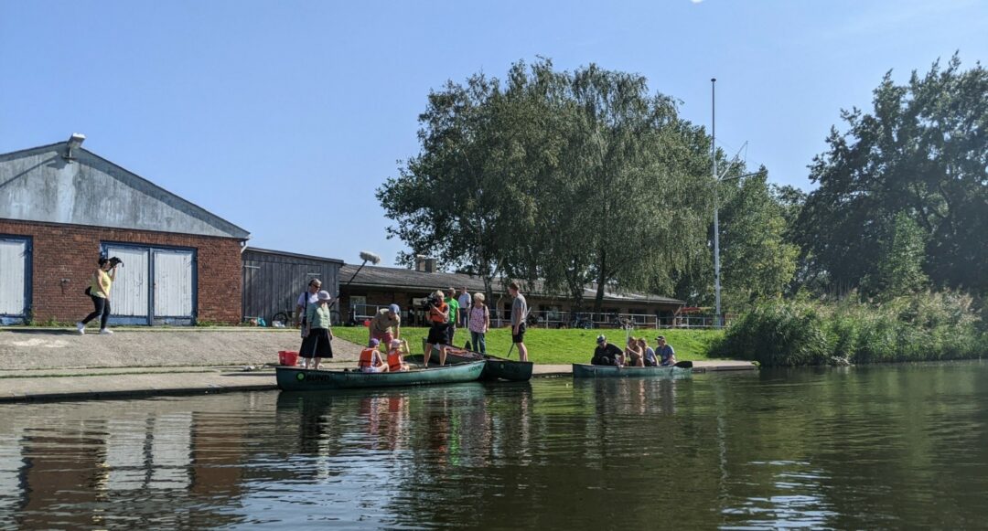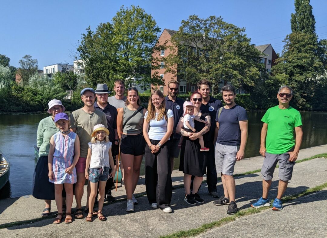 Schon bevor sich die freiwilligen Müllsammler*innen mit den drei grünen Kanus „Stichling”, „Biber” und „Libelle” des BUND und einem eigenen Kajak am Freitag, 6. September 2024 zum „Water Clean Up“ auf den Weg machten, wurde es aufregend: Der Norddeutsche Rundfunk (NDR) war mit einem Kamerateam vor Ort, um die Aktion, die im Rahmen von „Wildes Wilhelmsburg“ stattfand, für das Hamburg Journal zu filmen. Nach dem fröhlichen „Hallo Hamburg“ schnappten sich insgesamt 16 Umweltschützer*innen von ein bis 60 Jahren Greifzangen, Eimer und Müllsäcke, um den Ernst-August-Kanal rund um den Ruderclub ein bisschen weniger dreckig zu machen. Auch Menschen vom Anglerverband Hamburg waren dabei und warfen Seile mit Enterhaken von der Brücke an der Schlenzigstraße, um große Gegenstände unterhalb der Wasseroberfläche zu finden und zu bergen. Der Bezirk Hamburg hatte ebenfalls Mitarbeitende geschickt, um den Einsatz zu unterstützen.
