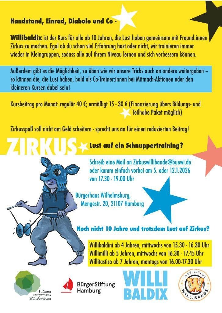 Willibaldix – Zirkuskurs – Schnuppertermine