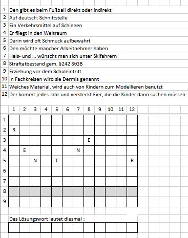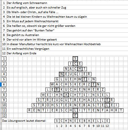 Und hier die Auflösung des Rätsels aus der vorigen Ausgabe: Das Lösungswort lautete „Schneebaelle“ und ergab sich wie folgt: